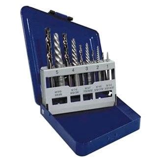 Hanson™ 10-piece 3/32″ to 5/8″ Square Shank Spiral Flute Screw Extractor Kit (11119) by Irwin®. If you’re faced with a broken bolt or screw, this product will help you remove it quickly and with minimum effort. It is manufactured from extremely durable high-grade material that withstands everyday wear and tear, so you can use it on a regular basis for many decades to come.
