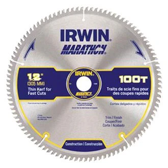 Marathon™ 12″ 100T ATB Circular Saw Blade (14084) by IRWIN®. If you’re looking for a reliable solution to complete your project, this 1st-grade product is right up your alley. Designed utilizing the finest materials, it delivers unmatched levels of durability and strength needed to provide long-lasting service life. Superior in functionality, it will help you make any job easier and faster.