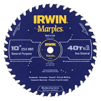 Marples™ 10″ 40T Carbide ATB Circular Saw Blade (1807367) by IRWIN®. IRWIN is proud to introduce a full line of fine woodworking saw blades that are manufactured in Italy to the highest standards of precision required for fine woodworking and finish carpentry.