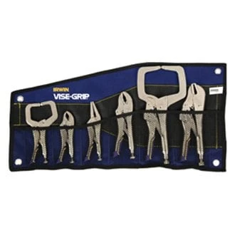 Vise Grip™ Fast Release™ 6-piece 5″ to 10″ Metal Handle V/Long Nose/Straight/Curved Jaws Locking Pliers Set by IRWIN®. The IRWIN VISE-GRIP fast release locking pliers set are built with Heat treated alloy steel for maximum durability. Features an easy to open, no-trigger release ansd hardened teeth Designed to grip from any angle. All tools in the kit feature a redesigned tactile grip for improved control.